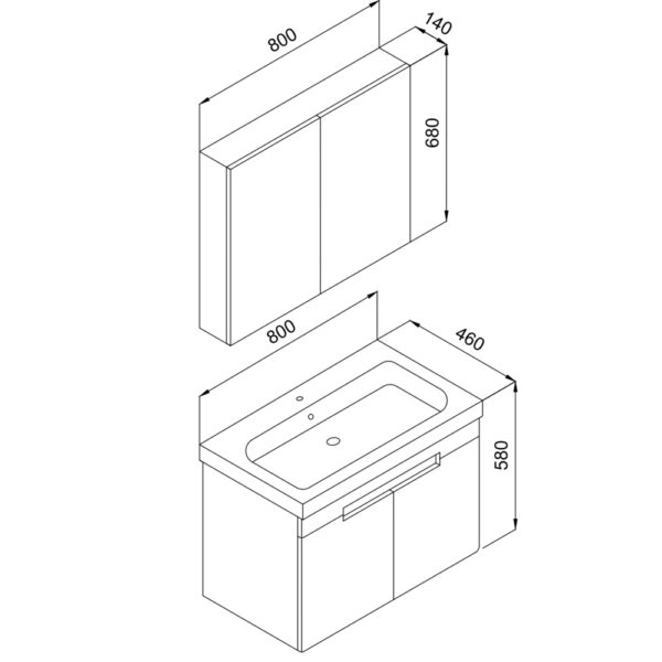 Σετ Έπιπλο Μπάνιο TREND Ανθρακί MDF 18mm Λάκα 80 9STRE080ABM