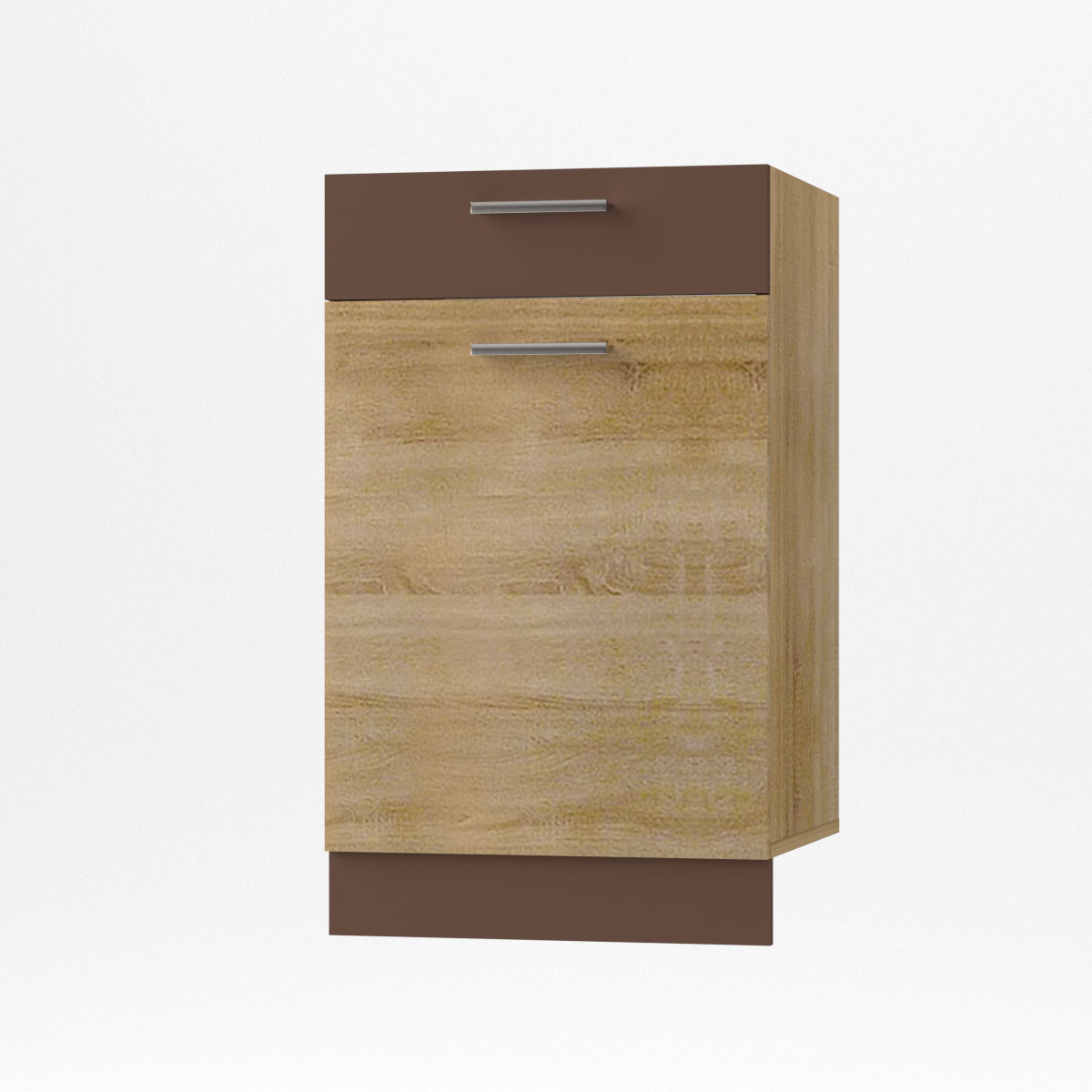 Κάτω ντουλάπι κουζίνας 50×85 σε Σονόμα-Μόκκα απόχρωση. Το έπιπλο διαθέτει ένα συρτάρι, και ένα ανοιγόμενο ντουλάπι.
