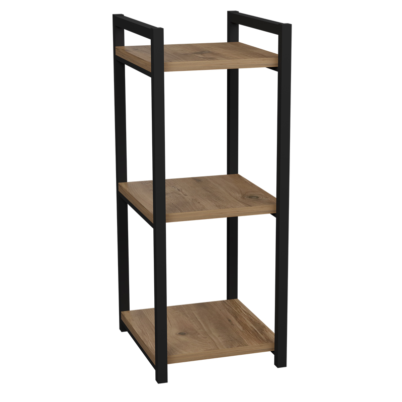 Επιδαπέδια ραφιέρα Harvey pakoworld μαύρο μέταλλο και μελαμίνη σε φυσική απόχρωση 33x28x70εκ