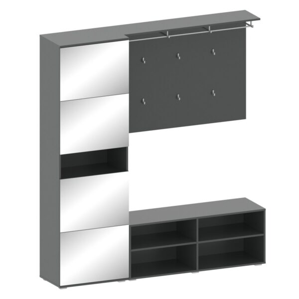 - Συνδυάζει καθρέφτη, κρεμάστρα και αποθηκευτικό χώρο, προσφέροντας πρακτικές λύσεις για οργάνωση.