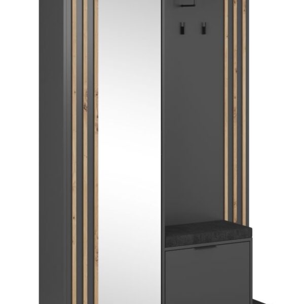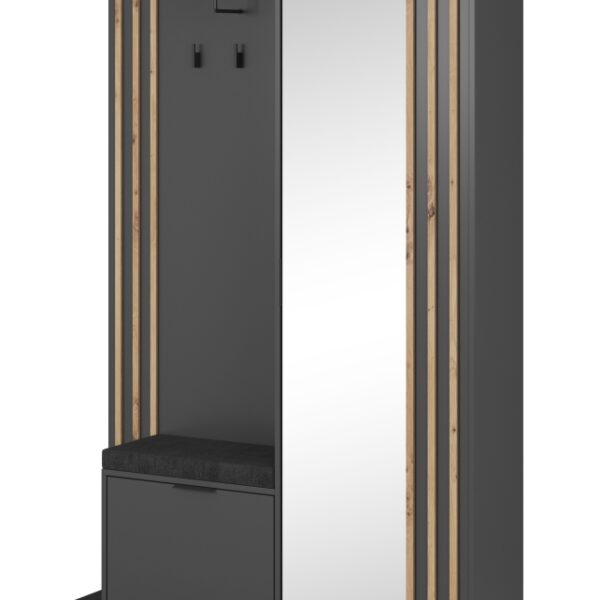 Έπιπλο εισόδου NELLY Γραφίτης με μαξιλάρι και καθρέπτη 131x192x40cm