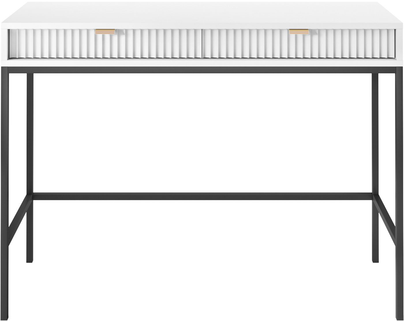 Με δύο μικρά συρτάρια για την αποθήκευση μικροαντικειμένων Ένας μοντέρνος, μινιμαλιστικός σχεδιασμός σε συνδυασμό με ένα χαρακτηριστικό χρυσό χρώμα κάνει το έπιπλο να φαίνεται εξαιρετικά κομψό και μοντέρνο. Μια απλή αλλά κομψή φόρμα με διακοσμητικές αυλακώσεις στις μπροστινές όψεις είναι ότι πρέπει για τους λάτρεις του μοντέρνου design. Η μεταλλική βάση δίνει ελαφρότητα στη δομή, και το σύνολο συμπληρώνεται από διακοσμητικές χρυσές λαβές.