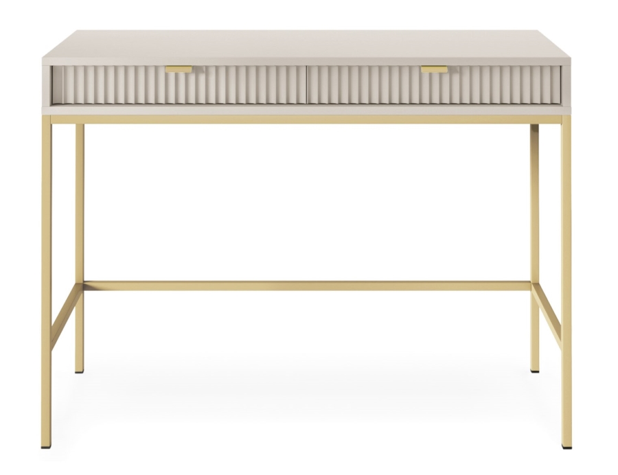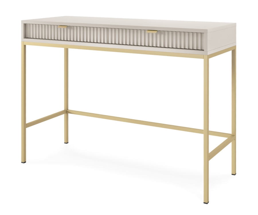 Με δύο μικρά συρτάρια για την αποθήκευση μικροαντικειμένων Ένας μοντέρνος, μινιμαλιστικός σχεδιασμός σε συνδυασμό με ένα χαρακτηριστικό χρυσό χρώμα κάνει το έπιπλο να φαίνεται εξαιρετικά κομψό και μοντέρνο. Μια απλή αλλά κομψή φόρμα με διακοσμητικές αυλακώσεις στις μπροστινές όψεις είναι ότι πρέπει για τους λάτρεις του μοντέρνου design. Η μεταλλική βάση δίνει ελαφρότητα στη δομή, και το σύνολο συμπληρώνεται από διακοσμητικές χρυσές λαβές.