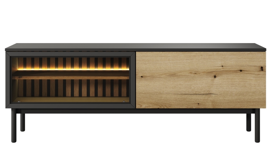 Έπιπλο τηλεόρασης Lang Ανθρακί + Φυσικό Evoke με βιτρίνα 150x55x39cm