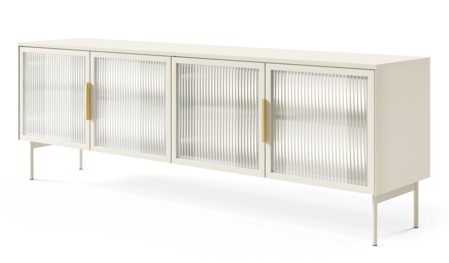 Το έπιπλο τηλεόρασης Lumi είναι εξοπλισμένο με ευρύχωρα ντουλάπια και συρτάρια, καθιστώντας το ιδανικό μέρος για αποθήκευση. Μοντέρνος, μινιμαλιστικός σχεδιασμός σε συνδυασμό με λευκό χρώμα Σαμπανί το κάνουν να φαίνεται εξαιρετικά κομψό και μοντέρνο. Είναι εξοπλισμένο με φωτισμό LED, που προσδίδει μοναδική γοητεία και δημιουργεί μια ευχάριστη ατμόσφαιρα στο σαλόνι. Η μεταλλική κατασκευή των ποδιών εξασφαλίζει σταθερότητα και ανθεκτικότητα, ενώ προσθέτει μια βιομηχανική γοητεία. Η μοντέρνα και κομψή εμφάνιση των επίπλων Lumi συμπληρώνεται με τη γυάλινη πόρτα από κρύσταλλο ασφαλείας με το ξύλινο MDF πλαίσιο.