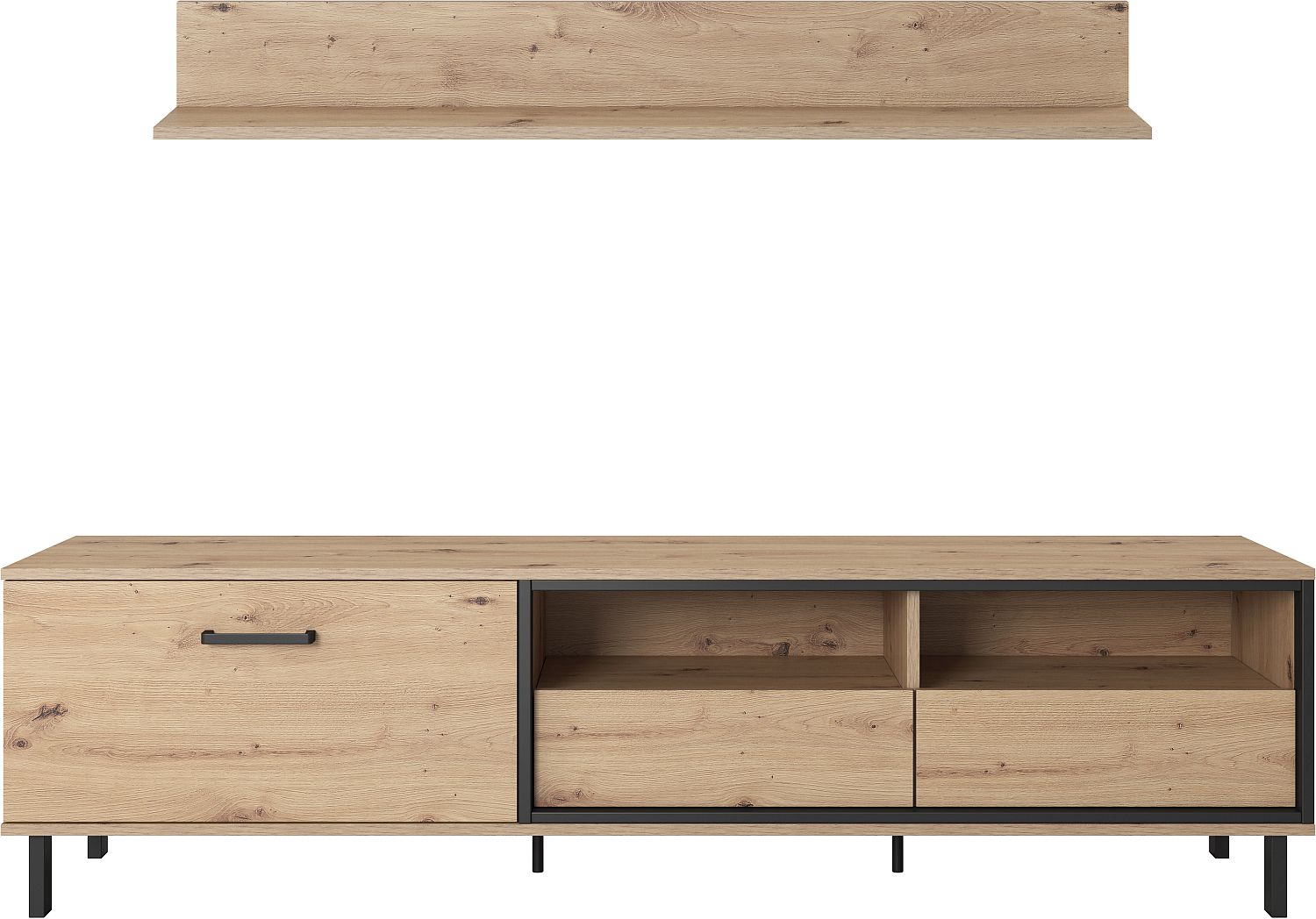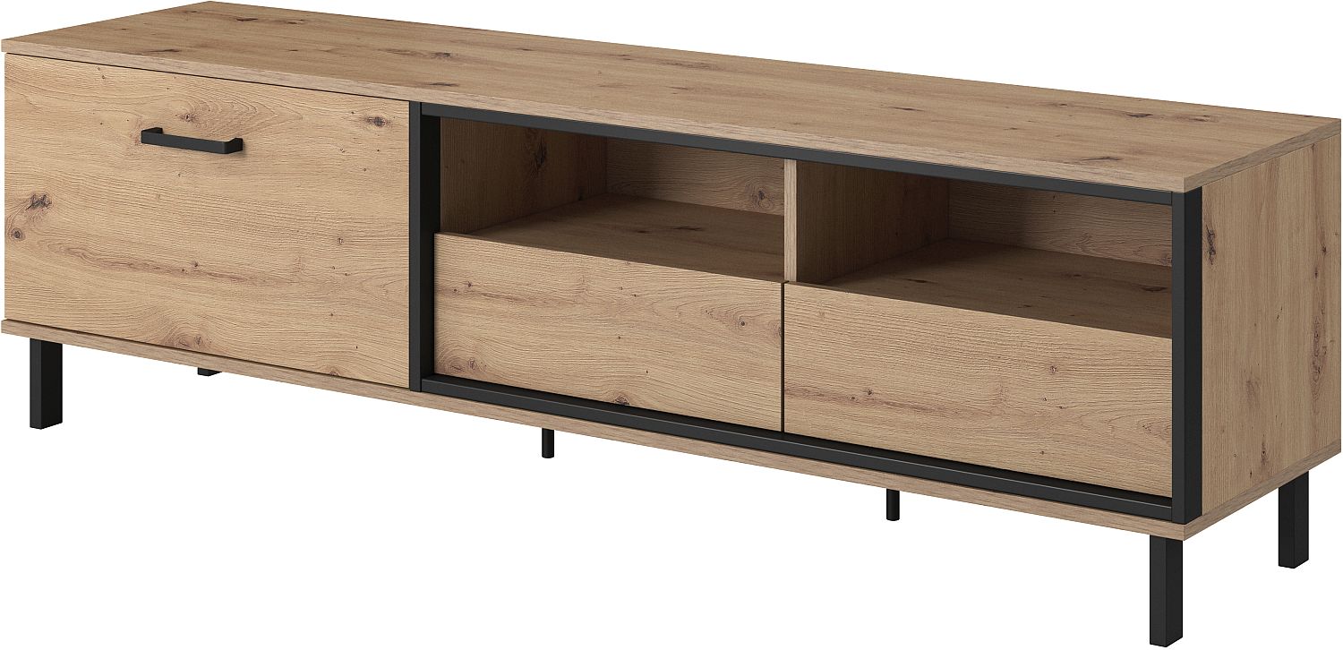 Έπιπλο τηλεόρασης Nest με ράφι. Χρώμα Φυσικό Artisan+Black pearl 165x49x40cm