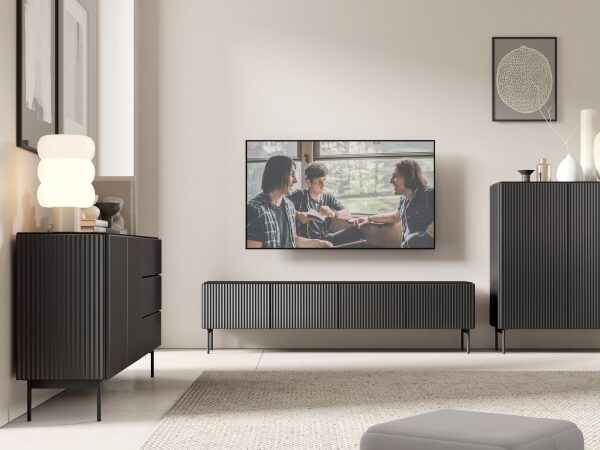 Το έπιπλο τηλεόρασης Tavo είναι ένα πολύ ευρύχωρο και μοντέρνο έπιπλο, έχει εξοπλιστεί με ευρύχωρα ράφια, καθιστώντας το ιδανικό μέρος για αποθήκευση. Μοντέρνος, μινιμαλιστικός σχεδιασμός σε συνδυασμό με φυσικό χρώμα το κάνουν να φαίνεται εξαιρετικά κομψό και μοντέρνο.