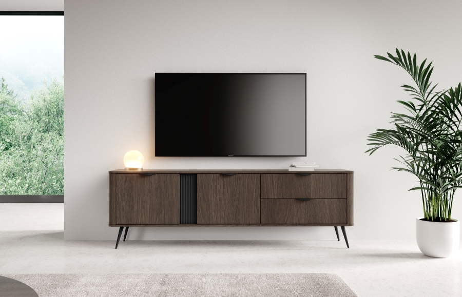 Έπιπλο τηλεόρασης Veris σκούρη Βελανιδιά 195x61x38cm
