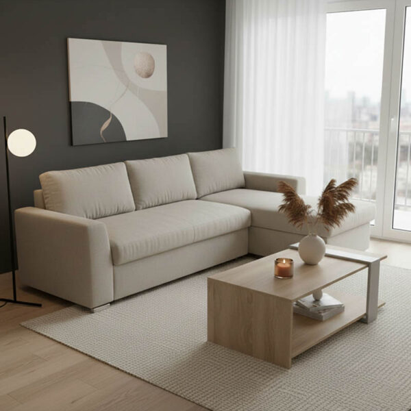 Γωνιακός καναπές-κρεβάτι δεξιά γωνία Belle pakoworld μπεζ 236x164x88εκ