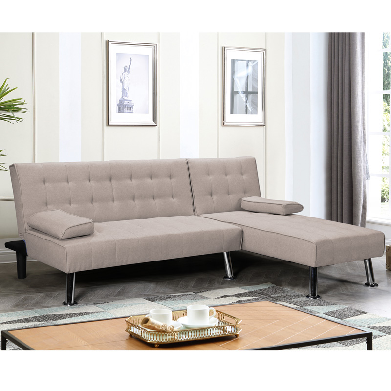 Καναπές-κρεβάτι Carmelo pakoworld με μπεζ-γκρι ύφασμα 214x80x86εκ