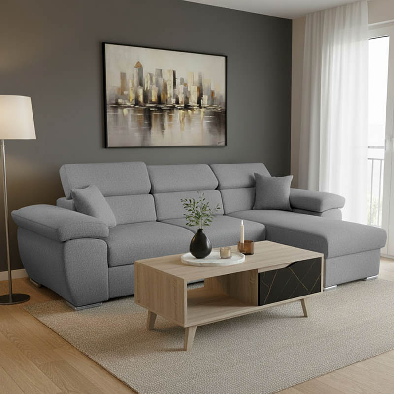 Γωνιακός καναπές-κρεβάτι αναστρέψιμος Lilian pakoworld ύφασμα γκρι 225x148x81εκ