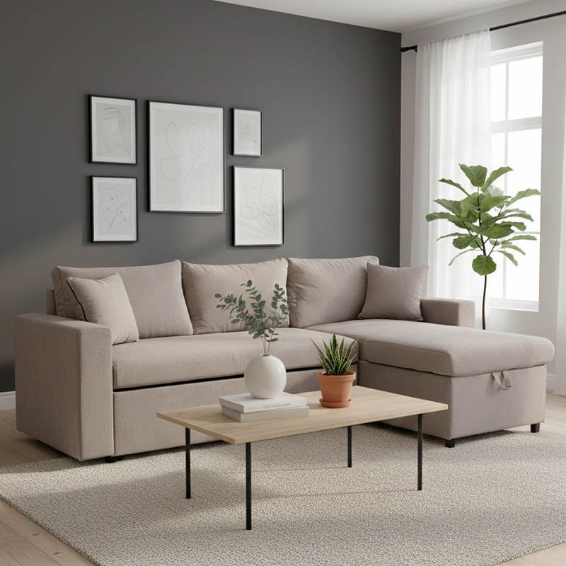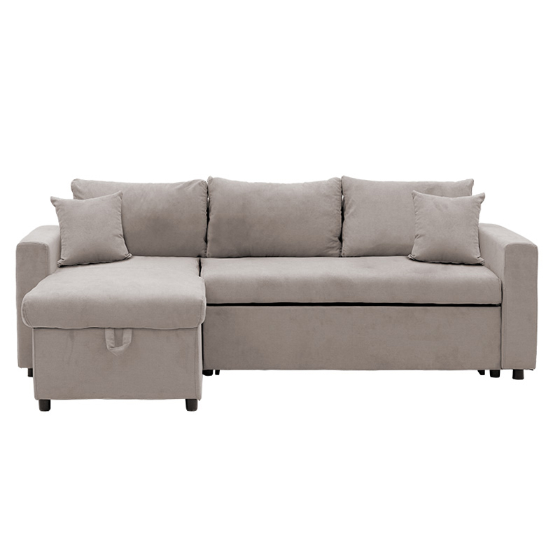 Γωνιακός καναπές-κρεβάτι αναστρέψιμος Lilian pakoworld ύφασμα μπεζ 225x148x81εκ