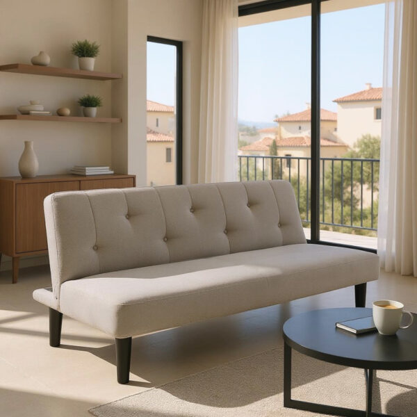 Καναπές-κρεβάτι Carmelo pakoworld με μπεζ-γκρι ύφασμα 214x80x86εκ