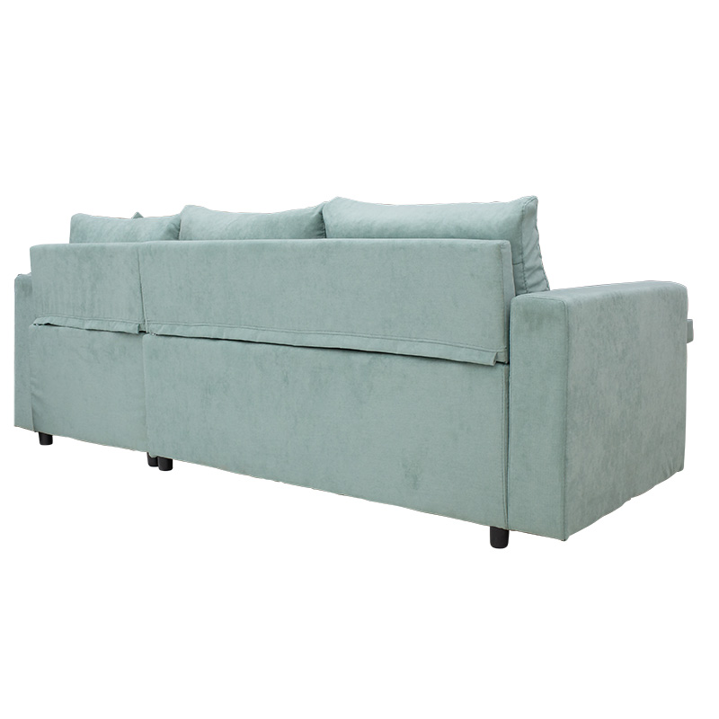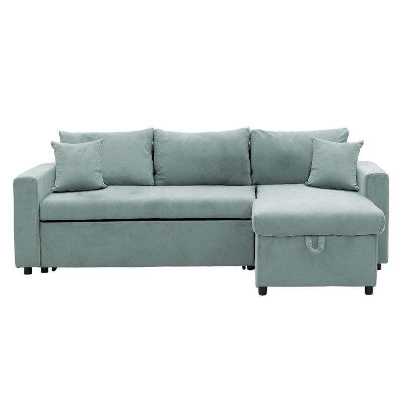 Γωνιακός καναπές-κρεβάτι αναστρέψιμος Lilian pakoworld ύφασμα πράσινο μέντας 225x148x81εκ