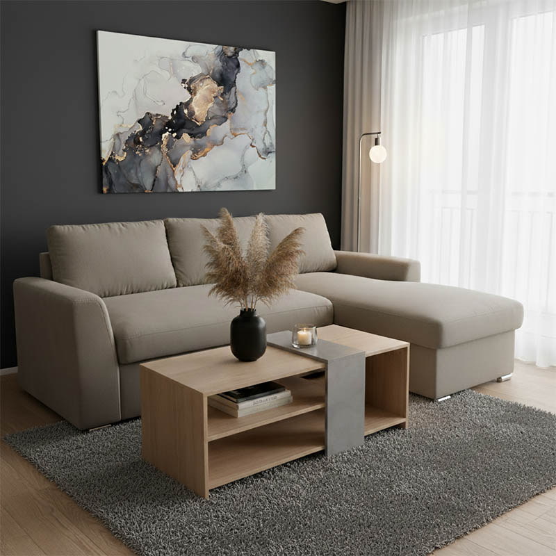 - Φέρει εύχρηστο μηχανισμό που με μία μόνο κίνηση ανασηκώνεται, μετατρέποντας τον καναπέ σε κρεβάτι και το αντίστροφο.