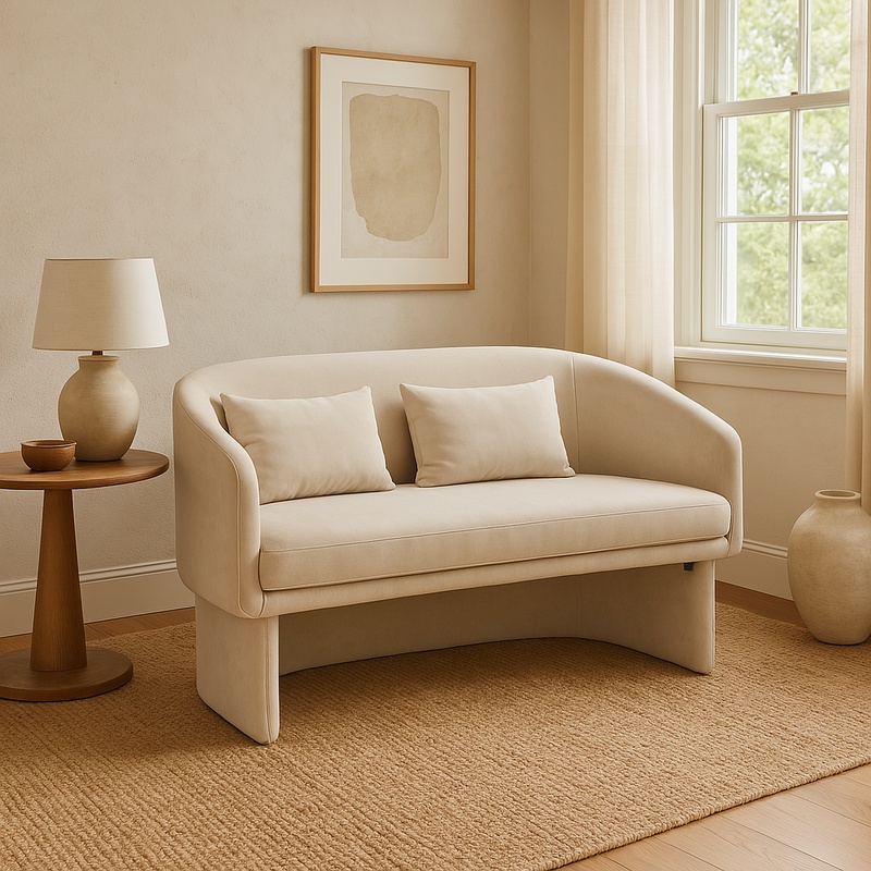 Καναπές διθέσιος Playmob pakoworld ύφασμα σε μπεζ απόχρωση 128x65x79εκ