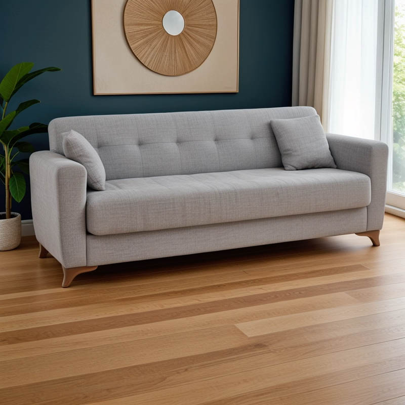 Καναπές-κρεβάτι με αποθηκευτικό χώρο τριθέσιος Modesto pakoworld γκρι ύφασμα 215x85x80εκ