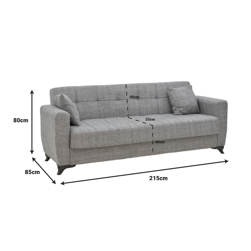 Καναπές-κρεβάτι με αποθηκευτικό χώρο τριθέσιος Modesto pakoworld μαύρο ύφασμα 215x85x80εκ