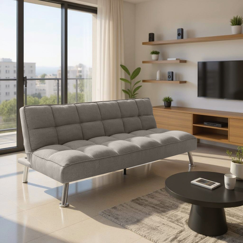 - Φέρει εύχρηστο μεταλλικό μηχανισμό «click-clack» που με μία μόνο κίνηση μετατρέπει τον καναπέ σε κρεβάτι και το αντίστροφο.