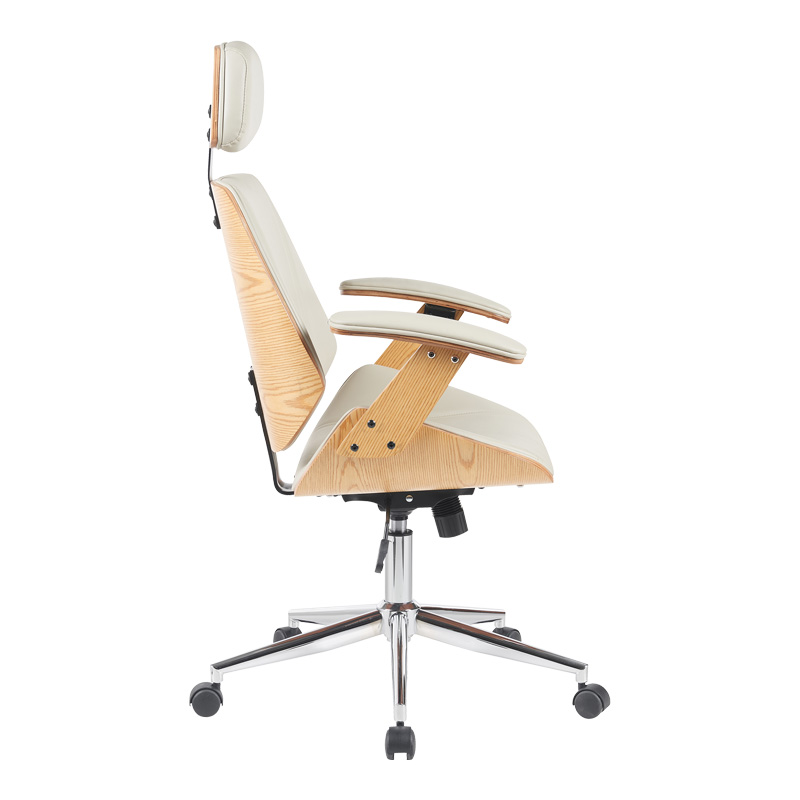 Καρέκλα γραφείου διευθυντή Fetseno pakoworld μπεζ pu-βάση χρωμίου 53x56x113.5-123.5εκ