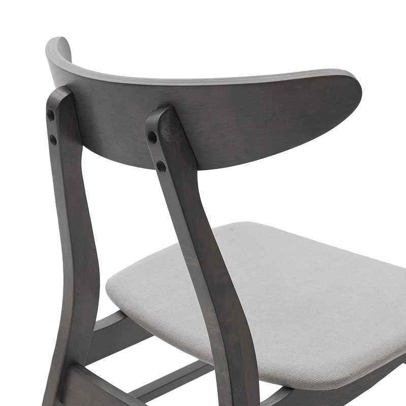 - Πλάτη και έδρα κατασκευασμένες από rubberwood πάχους 18χιλ. χρώματος καρυδί. Η έδρα επενδύεται με ανθεκτικό ύφασμα υψηλών αντοχών χρώματος γκρι.