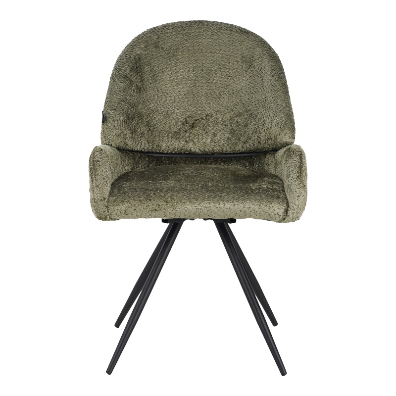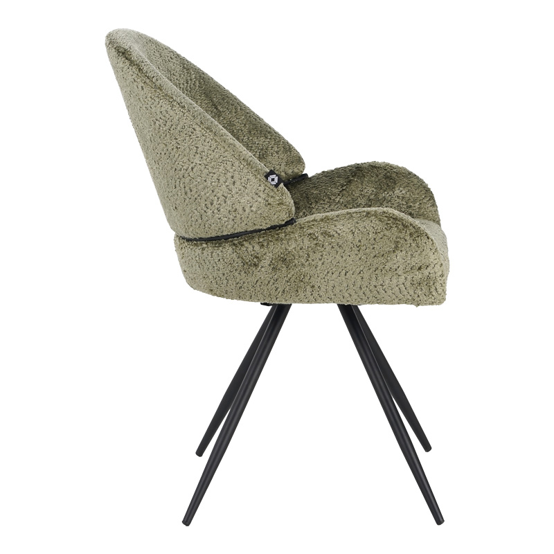 Καρέκλα περιστρεφόμενη Morea pakoworld μπουκλέ ύφασμα σε λαδί απόχρωση με μαύρα μεταλλικά πόδια 55×63.5×89.5εκ