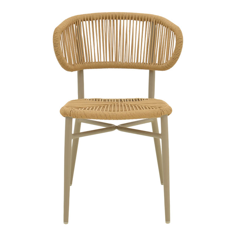 Καρέκλα στοιβαζόμενη Agus pakoworld αλουμίνιο καφέ-pe rattan σε φυσική απόχρωση 55x63x77εκ
