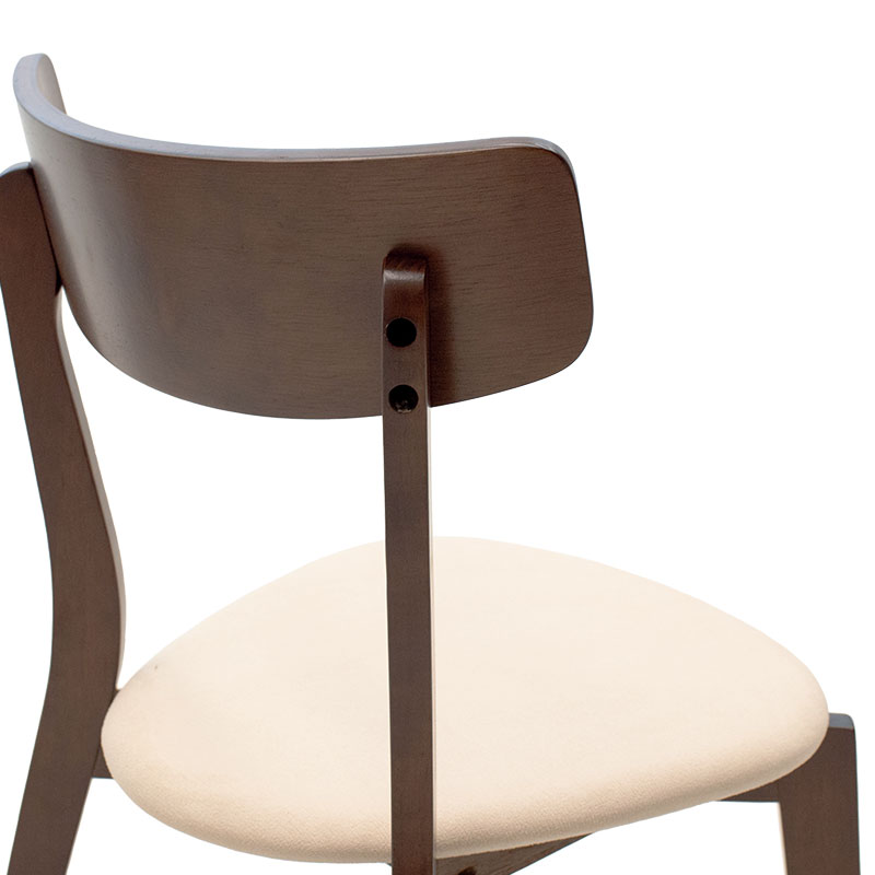 - Πλάτη και έδρα κατασκευασμένες από rubberwood πάχους 18χιλ. χρώματος καρυδί. Η έδρα επενδύεται με ανθεκτικό ύφασμα υψηλών αντοχών χρώματος μπεζ.