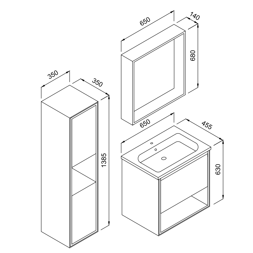 Κρεμαστός Καθρέπτης Μπάνιου Odelia με 3 ντουλάπια 96x14x65cm