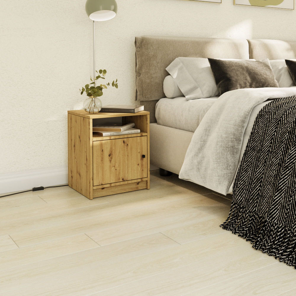 Κομοδίνο Luna, εξαιρετικής ποιότητας και υψηλής αντοχής, σε δρύινη απόχρωση.