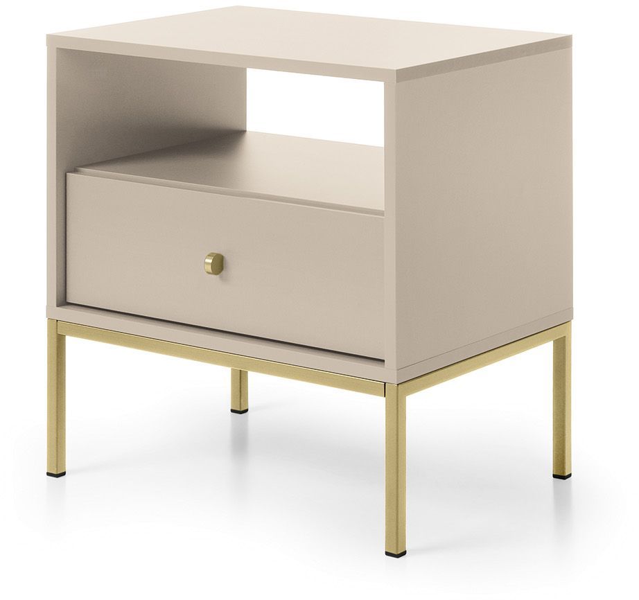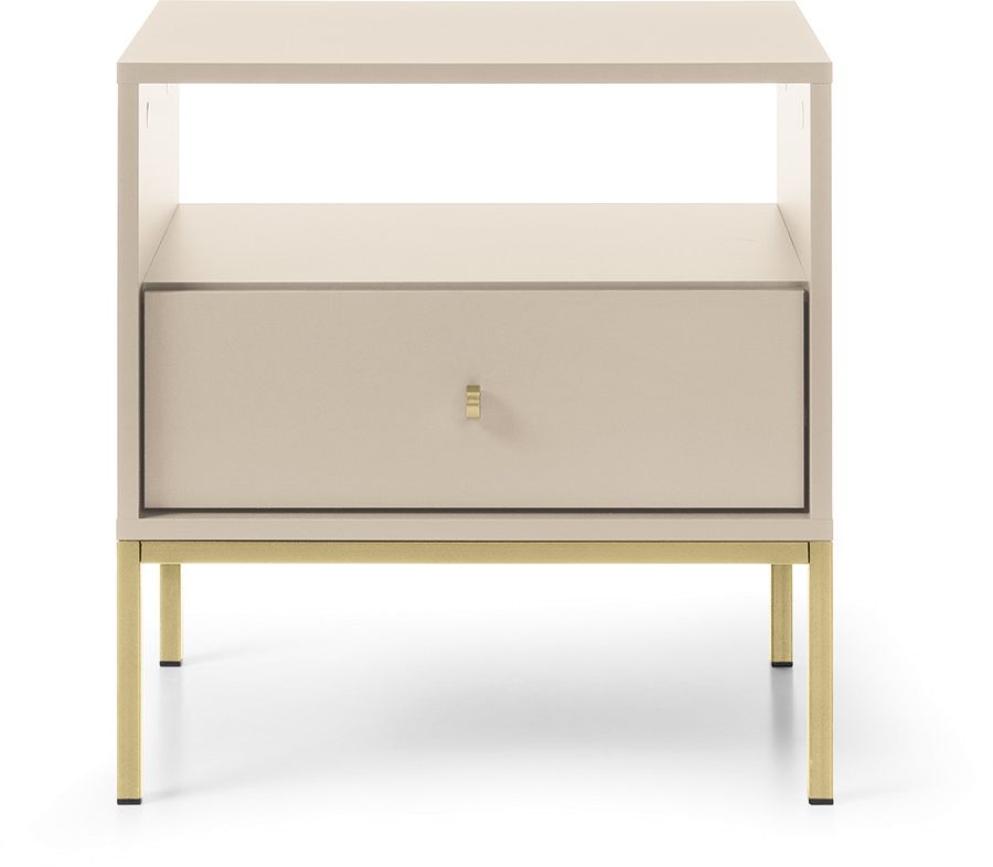 Το κομοδίνο Mono είναι ένα μοντέρνο έπιπλο για την κρεβατοκάμαρα, είναι εξοπλισμένο με ένα ευρύχωρο συρτάρι, το οποίο είναι ένα εξαιρετικό μέρος για να αποθηκεύετε εύχρηστα πράγματα όπως φορτιστές, καλλυντικά ή άλλα μικροαντικείμενα. Ο μοντέρνος, μινιμαλιστικός σχεδιασμός σε συνδυασμό με το χαρακτηριστικό μπεζ χρώμα κάνει το κομοδίνο να φαίνεται εξαιρετικά κομψό και μοντέρνο.