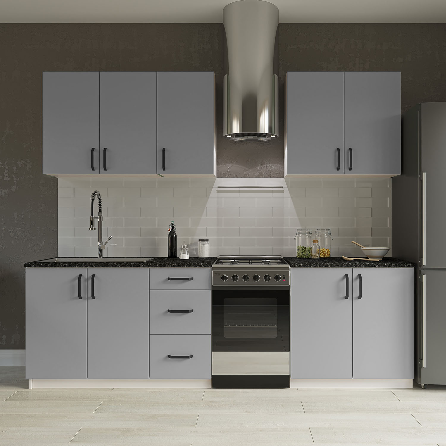 Κουζίνα Modest Σετ 3 Κουτιών Ανθρακί Άνω Κουτιά 140cm Κάτω 80cm