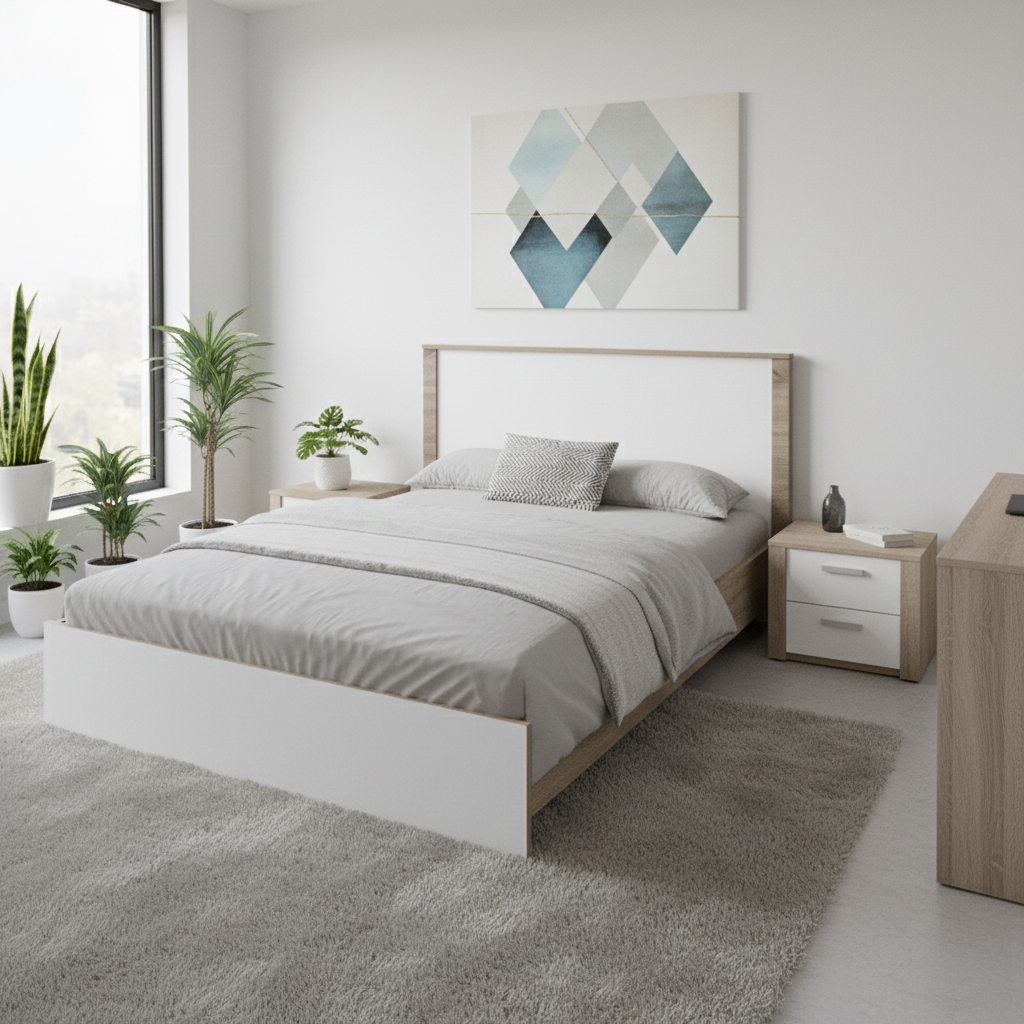 Κρεβάτι Athos pakoworld σε sonoma-λευκή απόχρωση 140×200εκ