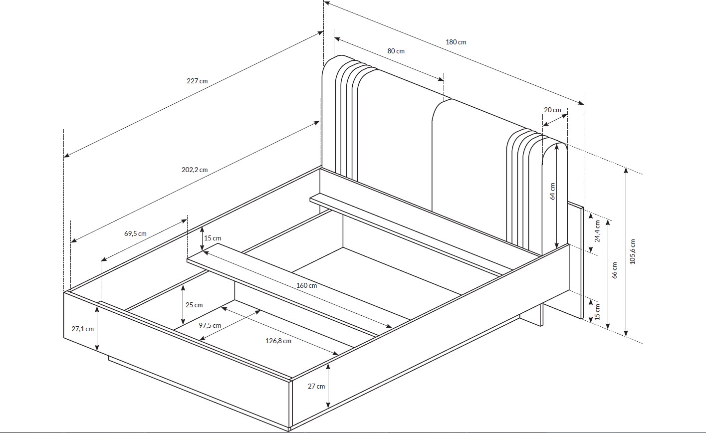 Διαστάσεις κρεβατιού 180x227x105cm (ΠxMxΥ)
