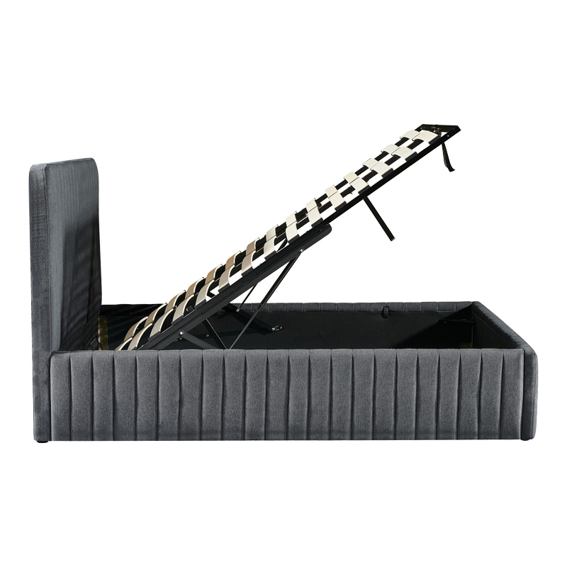 Κρεβάτι διπλό Zilin pakoworld ύφασμα ανθρακί με αποθηκευτικό χώρο 160×200εκ
