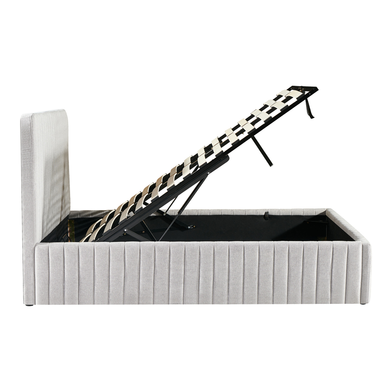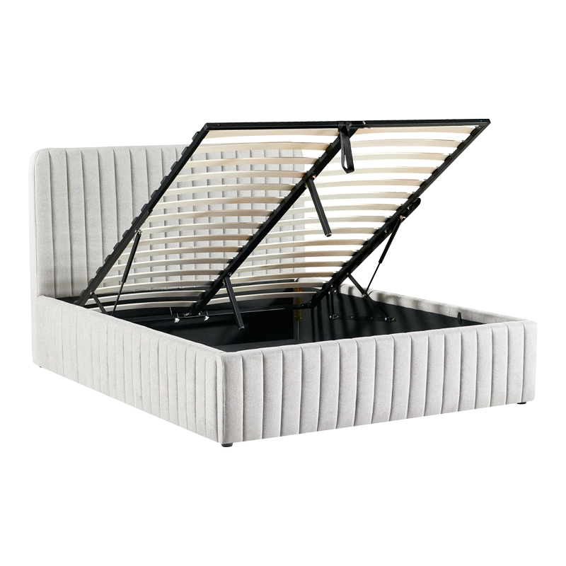 Κρεβάτι διπλό Zilin pakoworld ύφασμα γκρι-μπεζ με αποθηκευτικό χώρο 160×200εκ