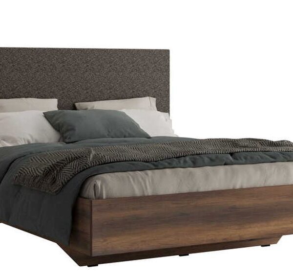 Κρεβάτι Oryana διπλό Καρυδιά με υφασμάτινο κεφαλάρι για στρώμα 160x200cm
