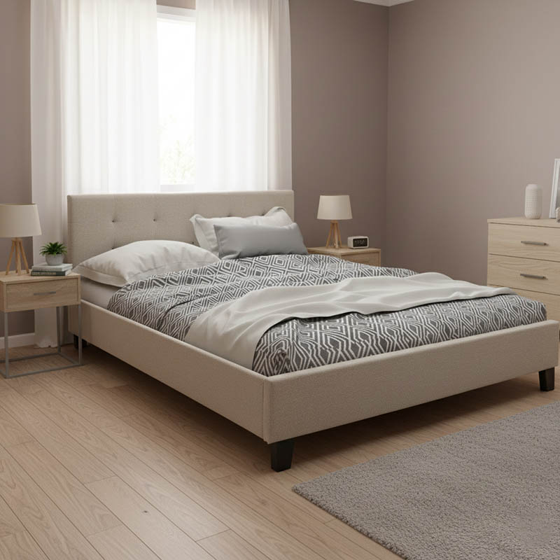 Κρεβάτι Mago pakoworld διπλό ύφασμα εκρού 150×200εκ
