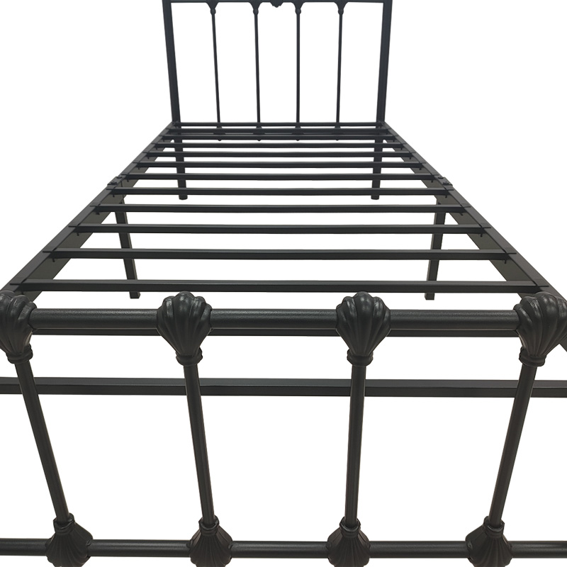 - Κατασκευασμένο από υψηλής ποιότητας μέταλλο με ανθεκτικό μαύρο ματ φινίρισμα, αυτό το κρεβάτι είναι σχεδιασμένο για μακροχρόνια χρήση και εύκολη συντήρηση.