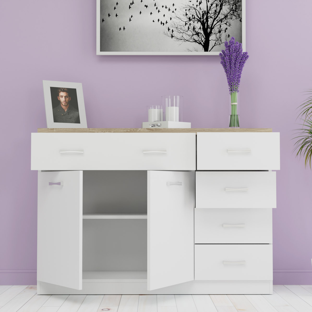 Μπουφές 120x33x85εκ Top Mix2D5S Λευκό-Sonoma μέ 5 Συρτάρια