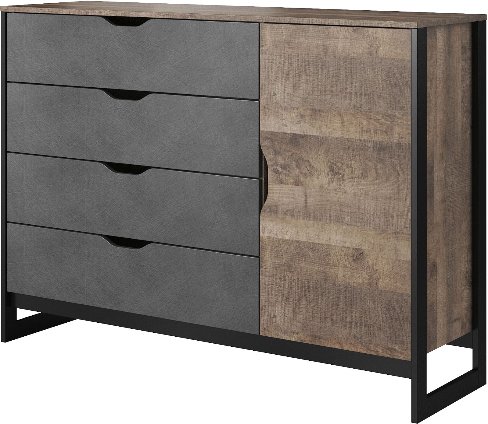 Η σειρά Arden Περιλαμβάνει έπιπλα με πρωτότυπο βιομηχανικό στιλ. Ο συνδυασμός βελανιδιάς με ελαφρώς γρατζουνισμένο σκούρο μεταλλιζέ γκρι θα δώσει στο εσωτερικό του χώρου σας μια μοναδική ατμόσφαιρα. Το σύνολο συμπληρώνεται με ένα μαύρο πλαίσιο από κόντρα πλακέ.