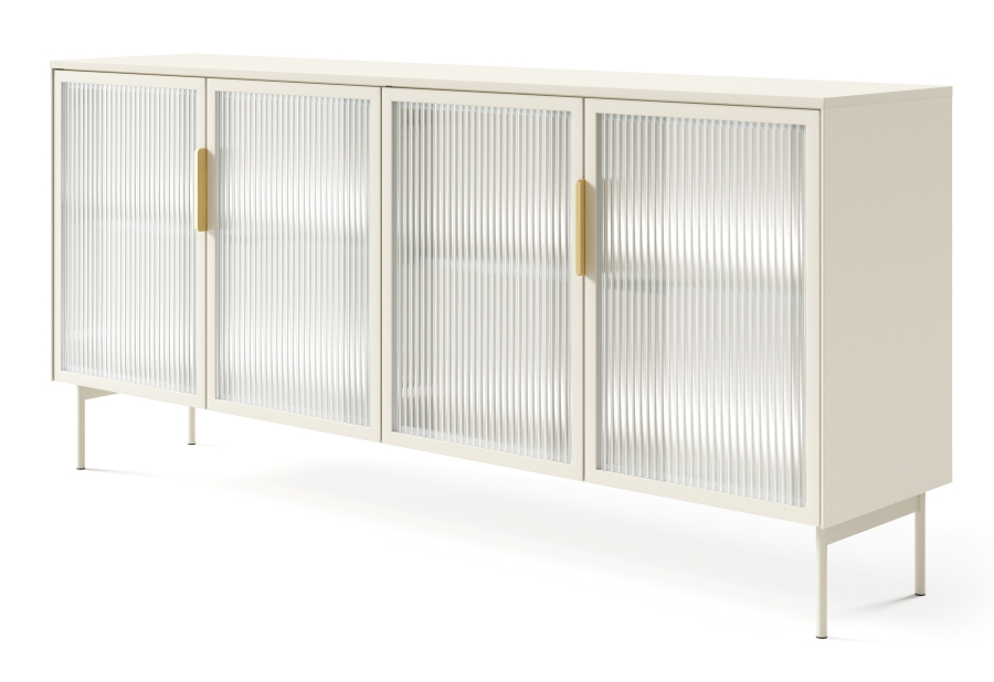 Ο μπουφές Lumi είναι εξοπλισμένος με ευρύχωρα ντουλάπια, καθιστώντας το ιδανικό μέρος για αποθήκευση. Μοντέρνος, μινιμαλιστικός σχεδιασμός σε συνδυασμό με λευκό χρώμα Σαμπανί , τον κάνουν να φαίνεται εξαιρετικά κομψό και μοντέρνο. Είναι εξοπλισμένη με φωτισμό LED, που προσδίδει μοναδική γοητεία και δημιουργεί μια ευχάριστη ατμόσφαιρα στο σαλόνι. Η μεταλλική κατασκευή των ποδιών εξασφαλίζει σταθερότητα και ανθεκτικότητα, ενώ προσθέτει μια βιομηχανική γοητεία. Η μοντέρνα και κομψή εμφάνιση των επίπλων Lumi συμπληρώνεται με τις γυάλινες πόρτες από κρύσταλλο ασφαλείας με το ξύλινο MDF πλαίσιο.