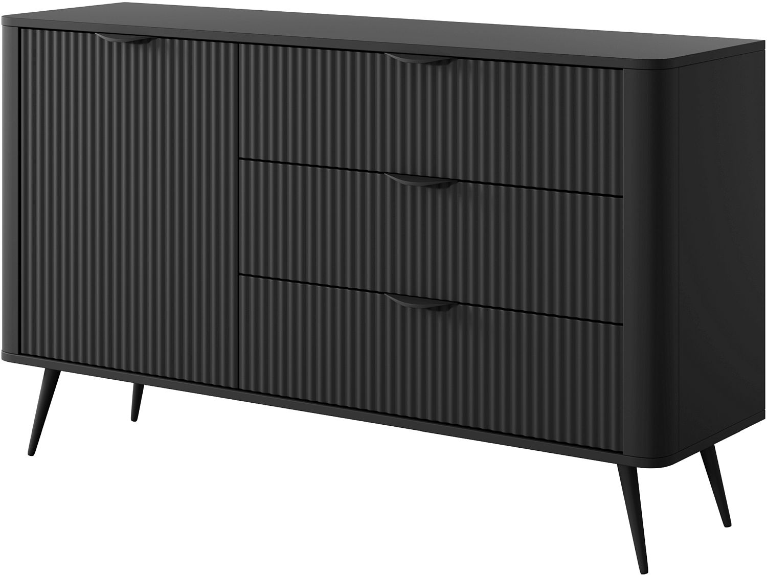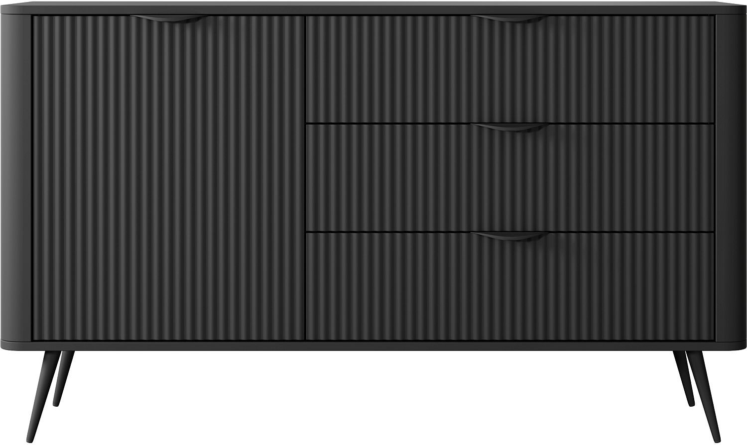 Η σειρά LANTE σε μαύρο χρώμα συνδυάζει κομψότητα και κλάση με νεωτερικότητα και πρωτοτυπία. Η συλλογή οφείλει τον μοναδικό της χαρακτήρα στις εντυπωσιακές, αυλακωτές προσόψεις από MDF, καθώς και στις στρογγυλεμένες άκρες, τις διακριτικές μαύρες λαβές και τα λεπτά, λοξά πόδια, που προσθέτουν μια οπτική ελαφρότητα στη σύνθεση. Ολόκληρο το σετ θα προσθέσει ταυτόχρονα κομψότητα στο σαλόνι σας και μια πινελιά νεωτερικότητας.