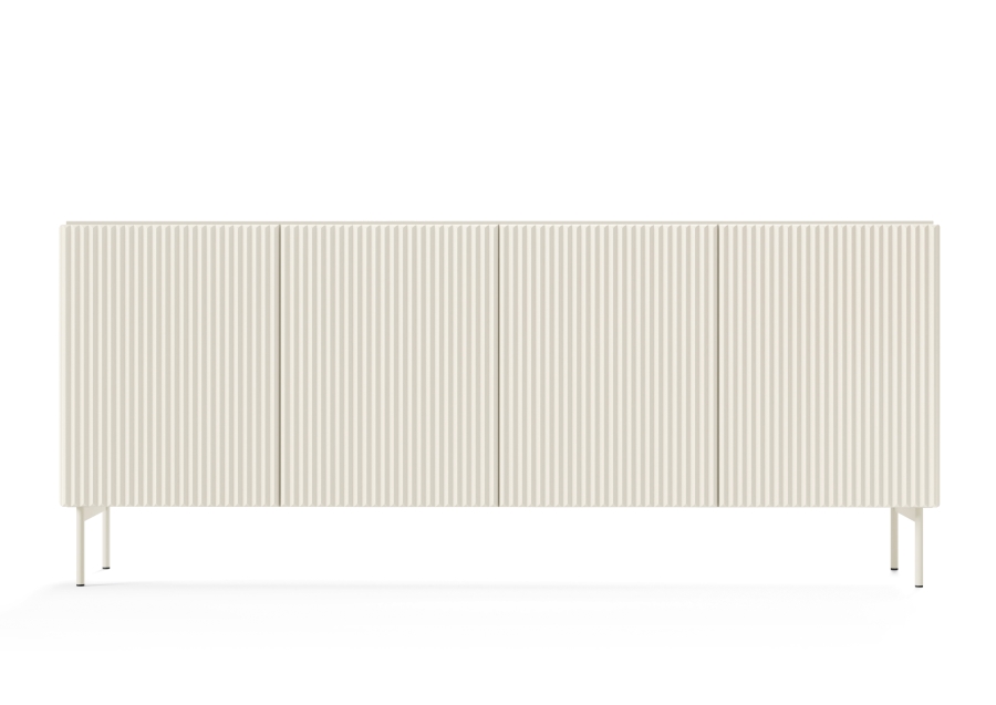 ΟΤα τρισδιάστατα μοτίβα με τη μορφή αυλακώσεων και φρεζαρισμάτων αποτελούν μια νέα τάση στη εσωτερική διακόσμηση, καθιστώντας τις συνθέσεις πιο αισθησιακές – διεγείρουν όχι μόνο την αίσθηση της όρασης, αλλά και της αφής. Το σετ Muti με αυλακωτές προσόψεις ταιριάζει απόλυτα σε αυτή την τάση. Η σειρά επίπλων Muti συνδυάζει λειτουργικότητα με μοντέρνο σχεδιασμό. Είναι κατασκευασμένα από ανθεκτική μελαμίνη σε συνδυασμό με όψεις από MDF που αποτελούν εγγύηση για τη μακροχρόνια χρήση τους. Τα έπιπλα έχουν προσόψεις χωρίς λαβές, γεγονός που τους προσδίδει μια κομψή, μινιμαλιστική εμφάνιση. Τα έπιπλα στηρίζονται σε λεπτά μεταλλικά πόδια ύψους 18cm, προσθέτοντας ελαφρότητα στο σύνολο. Ο μπουφές MUTI είναι εξοπλισμένος με 2 ντουλάπια και 3 συρτάρια καθιστώντας τον ιδανικό για την αποθήκευση αντικειμένων. Ο μπουφές MUTI θα λειτουργήσει καλά τόσο σε ένα μοντέρνο όσο και σε ένα πιο κλασικό εσωτερικό.