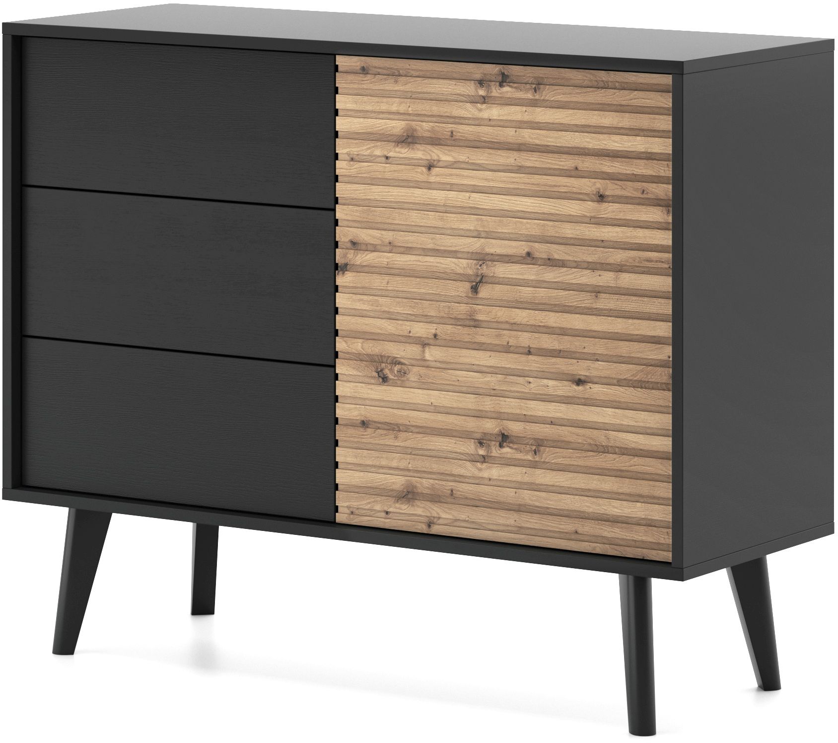 Μπουφές Willow με συρτάρια ανθρακί + φυσικό Αρτιζάν 104x83x40cm