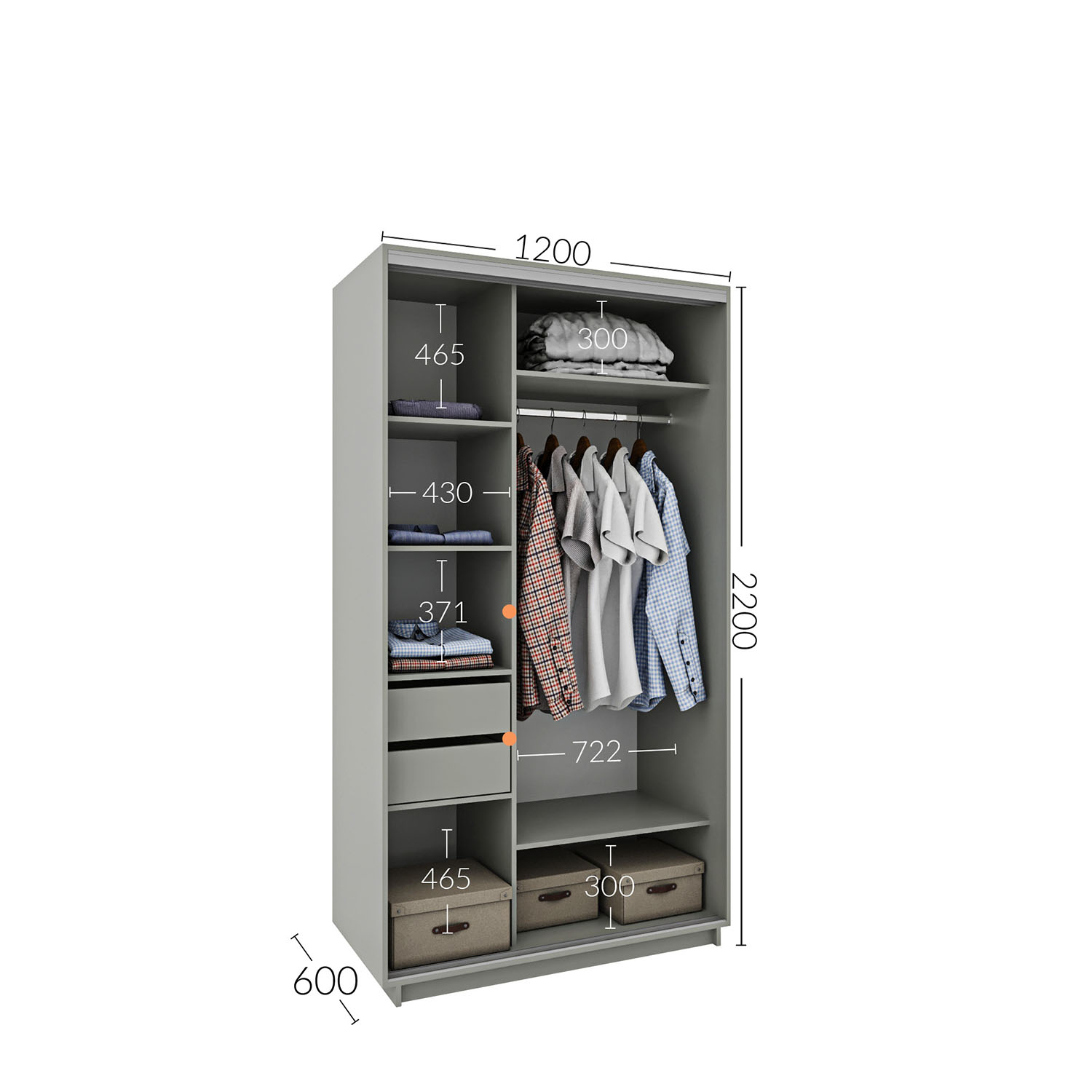 Δίφυλλη Ντουλάπα Santes Χρυσό Δρυς-Γραφίτης 90x60x197.5cm