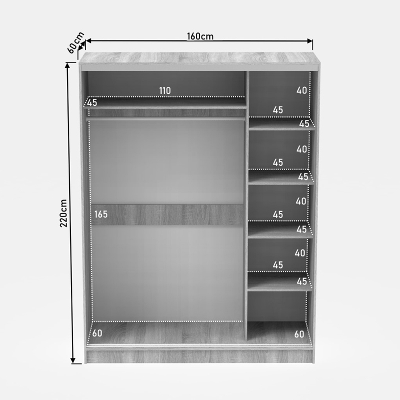 Ντουλάπα δίφυλλη συρόμενη με καθρέφτη Korredor Ι pakoworld σε sonoma απόχρωση 160x60x220εκ