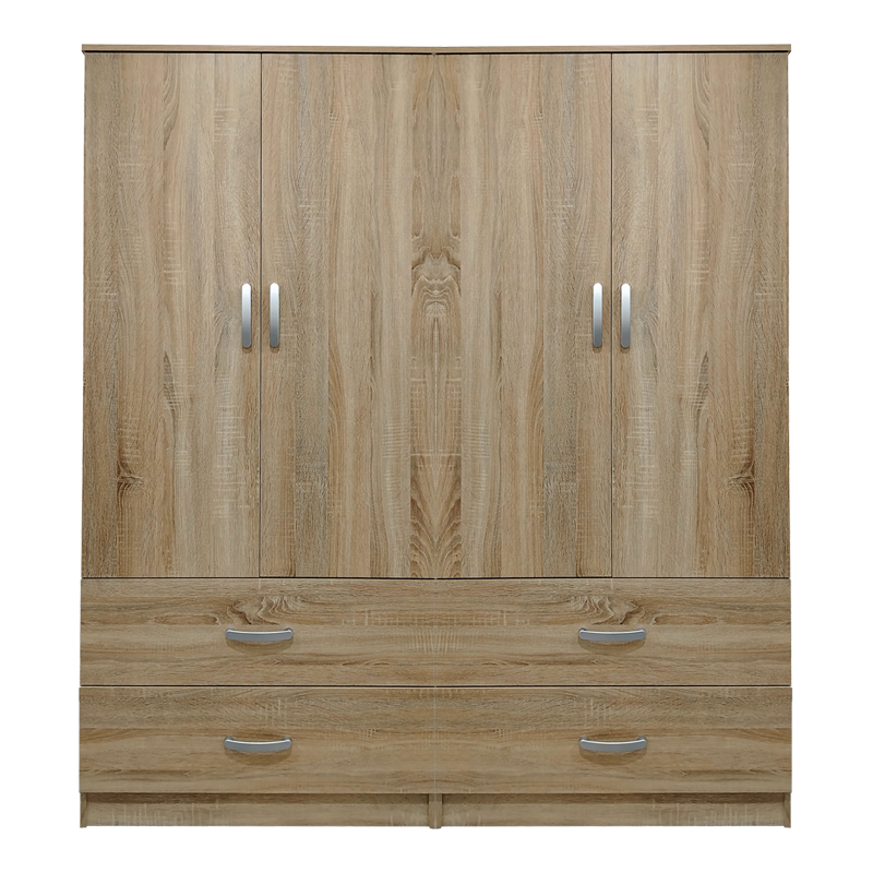 - Περιλαμβάνει τέσσερις πόρτες, εσωτερικά φέρει ράγα για κρεμάστρες ενώ κάτω φέρει τέσσερα μεγάλα συρτάρια για την αποθήκευση ρούχων και αξεσουάρ.