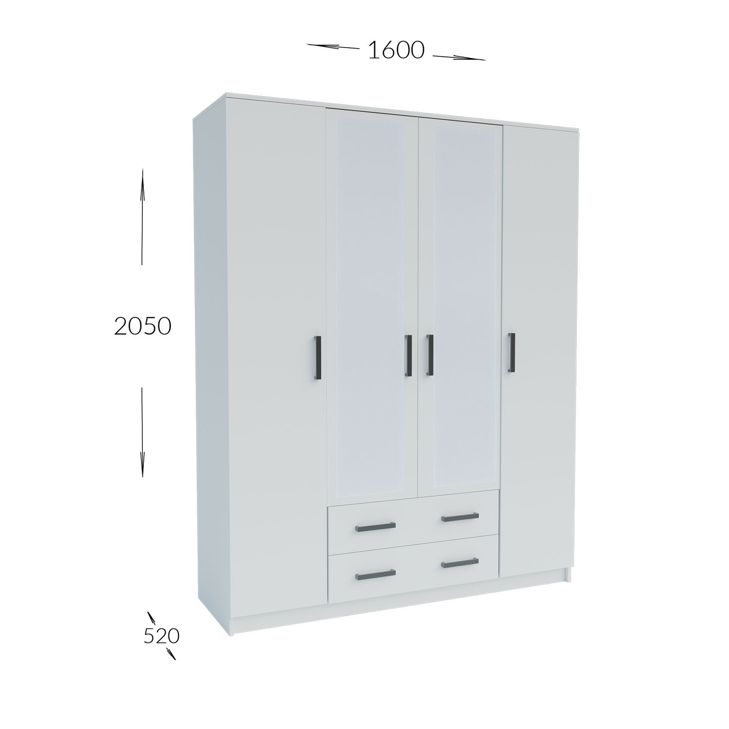 Ντουλάπα Τετράφυλλη Simple 4D2D Λευκή 160x52x205cm