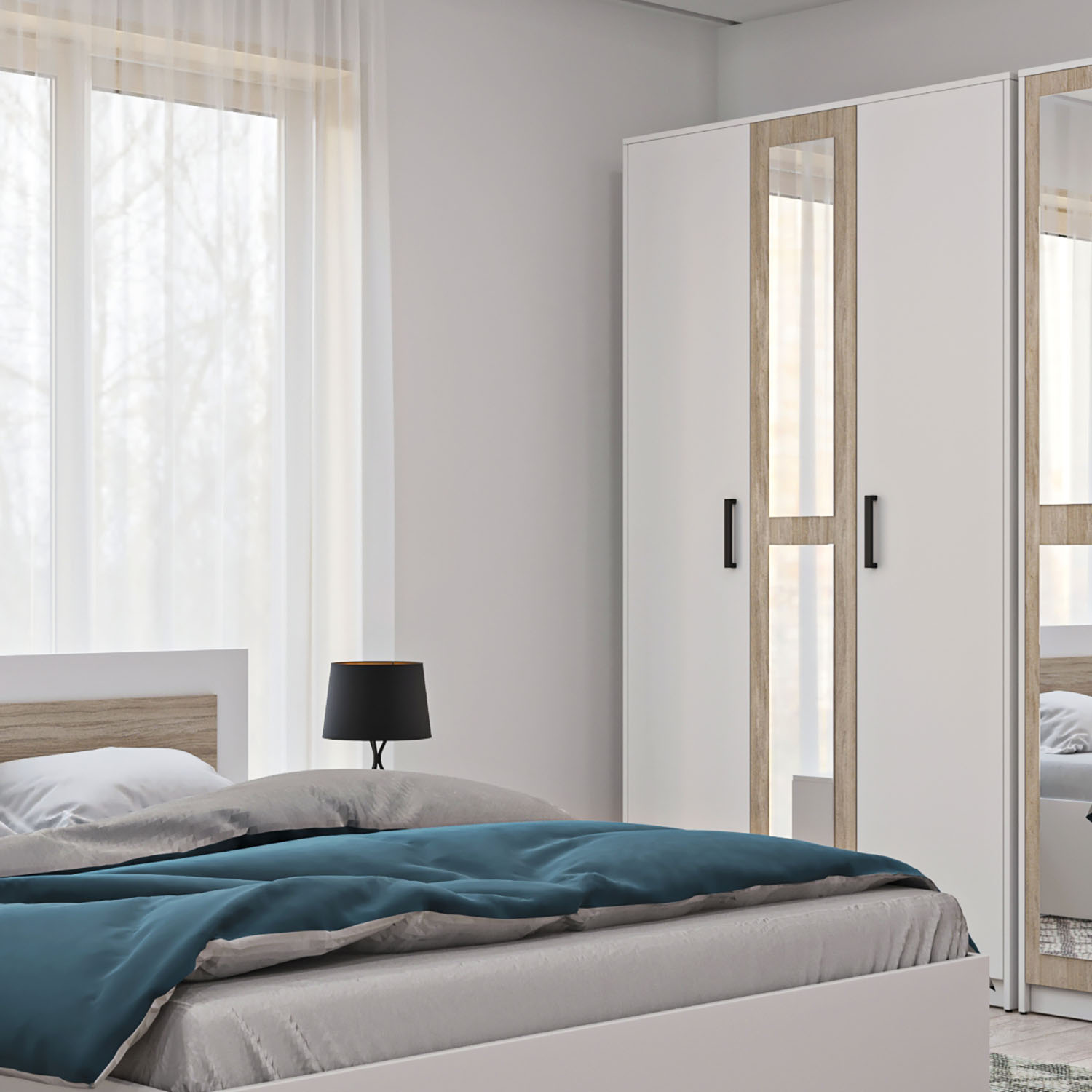 Τρίφυλλη Ντουλάπα Viva, εξαιρετικής ποιότητας και υψηλής αντοχής, σε ιδιαίτερο συνδυασμό χρωμάτων λευκό με σονόμα.